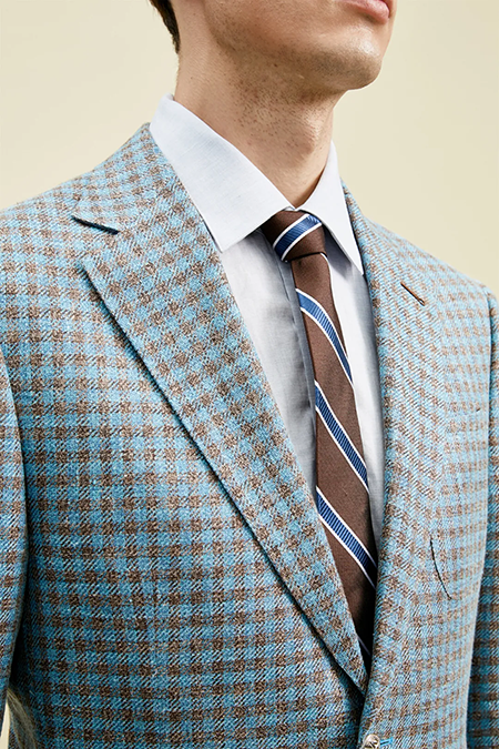 而打開夏季西裝的正確方式,你需要滿足:高支數(shù)、低克重、飽和度低的色彩,輕薄優(yōu)雅,不失紳士風度。