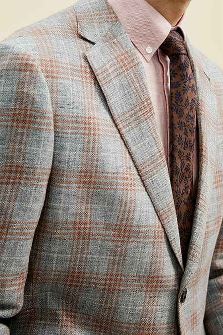 誰說男人就不能穿粉色?明亮度適中的藕粉色,配合線條分明的格紋設計,值得你細細去品味。粉色的休閑,亦是一種從容。